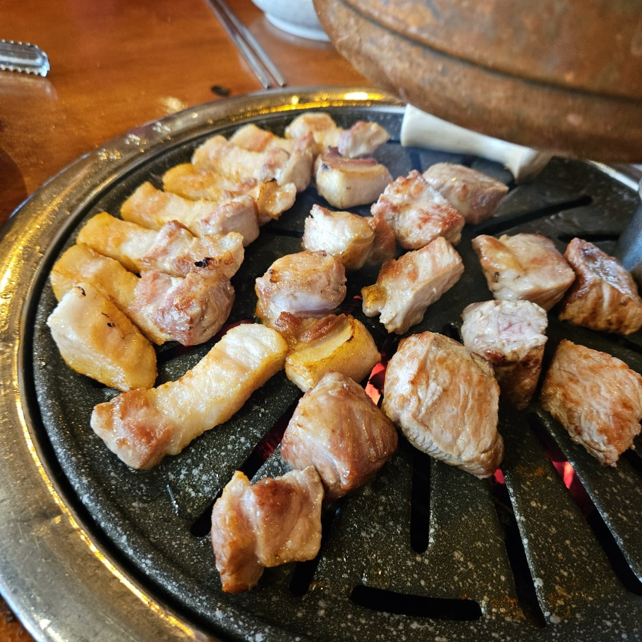 직원분이 고기를 어느정도는 구워주기 때문에 편했다. 단, 어느정도 구워진 후, 커팅을 하고 난 다음에는 직접 구워야 한다.