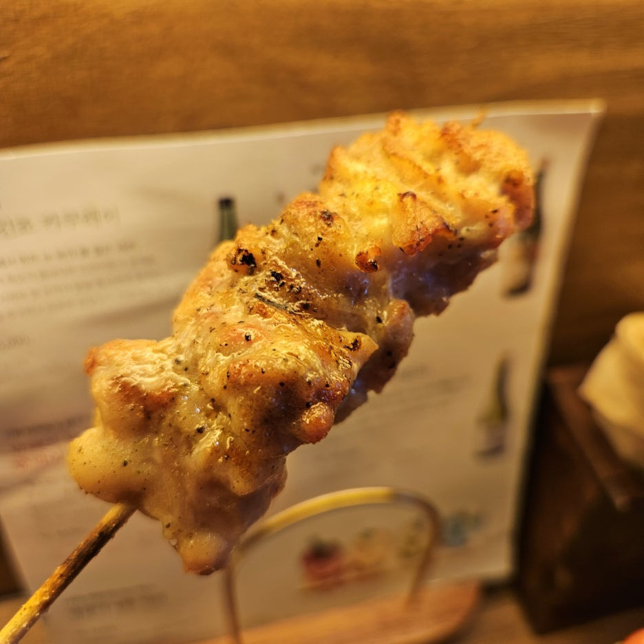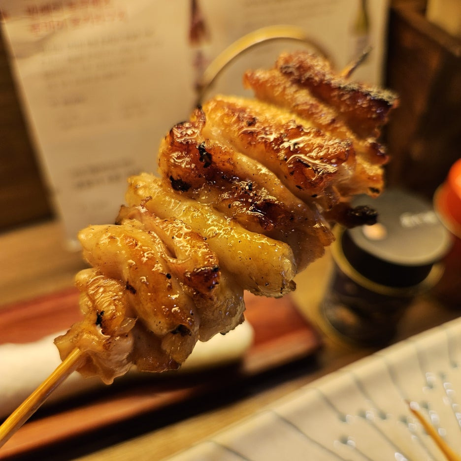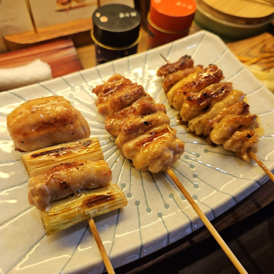 3가지의 야키토리가 각 1개씩 나온다. 츠쿠네, 새우 삼겹 말이, 닭 다리 연골.