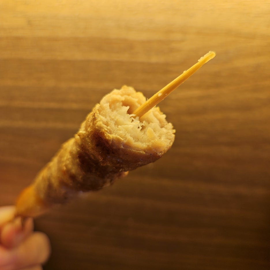 닭살을 갈아서 소시지같이 뭉쳐서 만든 것으로, 아주 부드러운 식감에 지방의 고소함이 올라오는 맛. 여전히 훌륭한 맛.