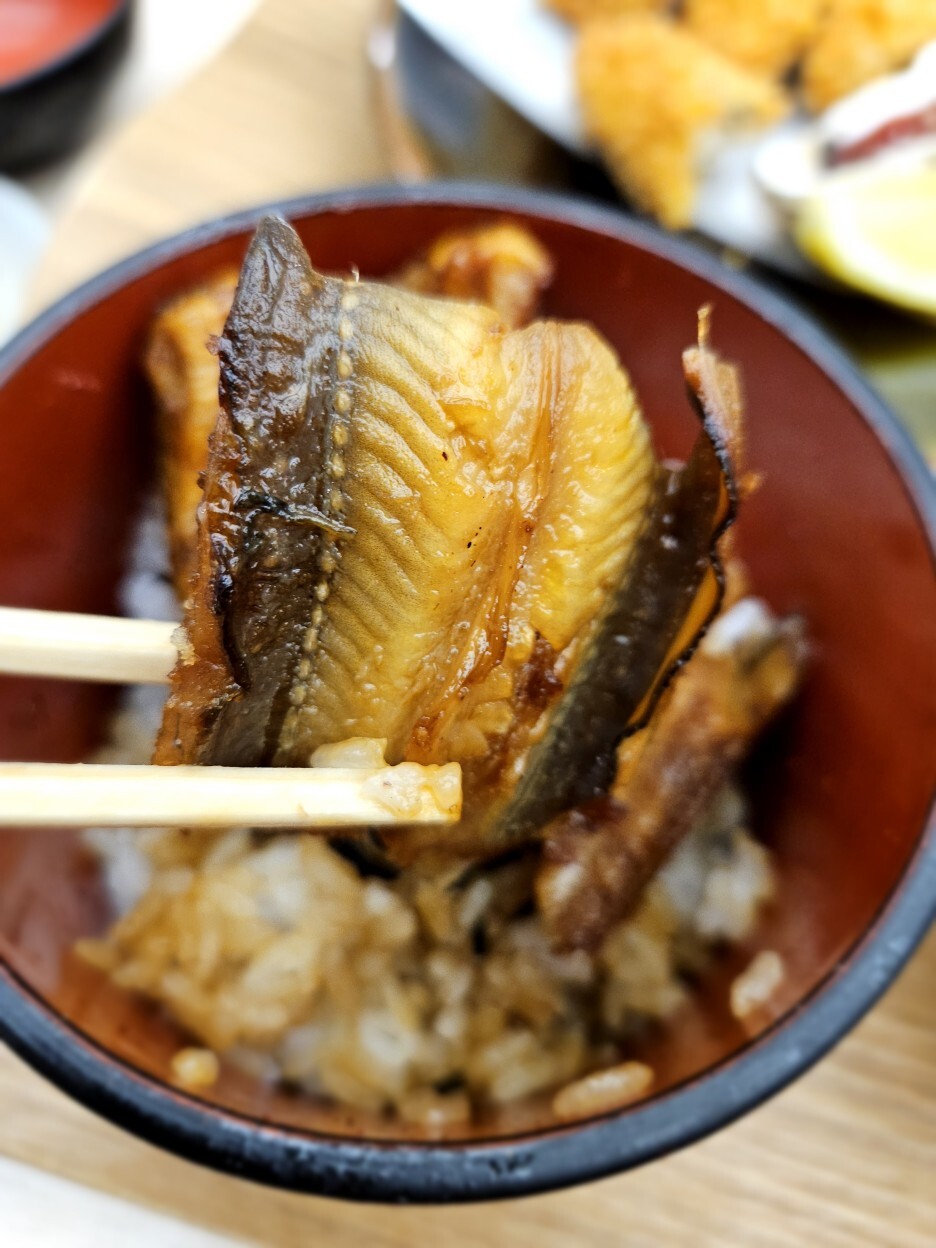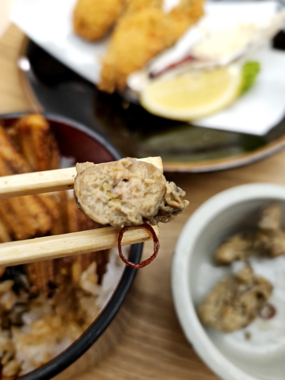 굴튀김은 적절히 맛있는 튀김이다. 마요네즈에 찍어 먹으니 고소함이 더해진다. 굴 자체는 상당히 신선한 느낌이고, 알도 통통하다. 튀김 자체도 아주 바삭하니 실력이 좋다. 생굴을 시켜서 드시는 분들을 보니 훨씬 더 알이 굵던데 아마도 튀겨지면서 수분이 날아가서 줄어들었거나 아니면 튀김용은 조금 작은 녀석들을 사용하는지도.