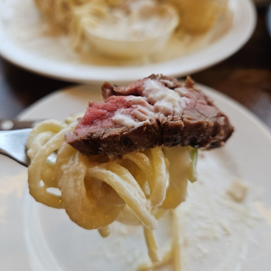 식은 고기는 빠네의 크림소스와 함께 먹으니, 이게 좋았다. 소스의 온기가 남아 있었기에, 스테이크의 차가움을 커버해 주었고, 따뜻해진 고기는 부드러워지는 느낌.