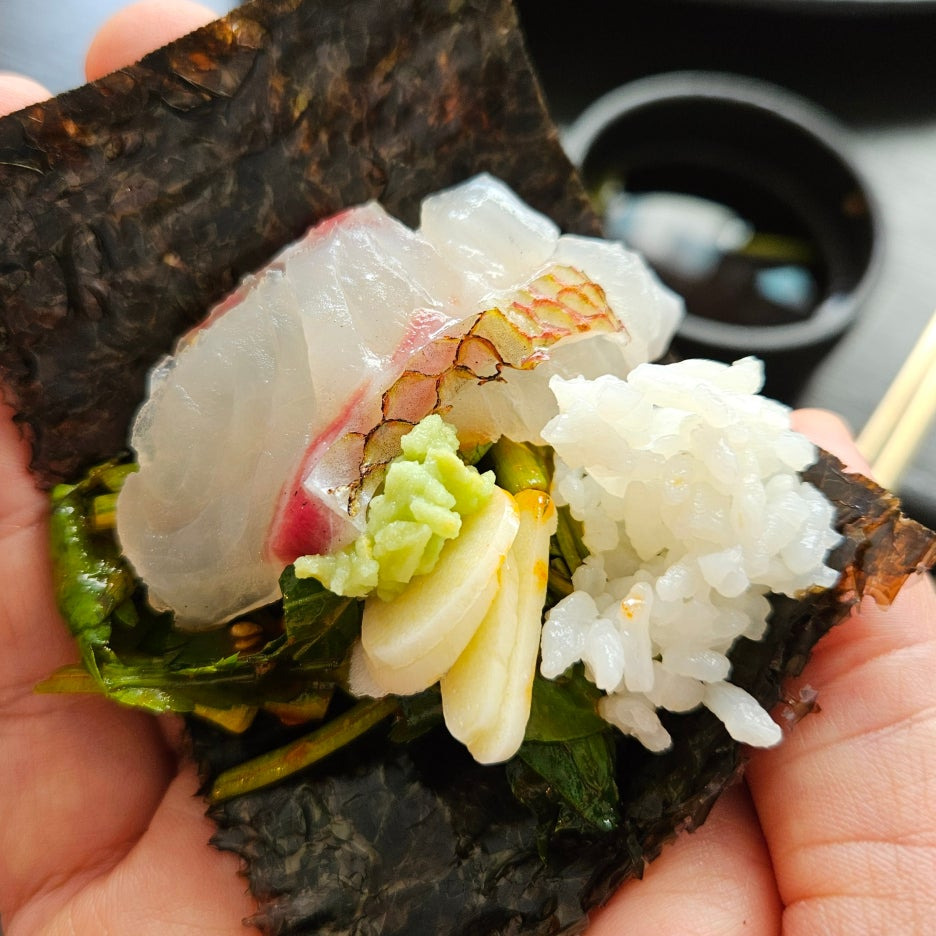 예상외로 아주 훌륭한 맛이다. 이렇게 싸먹어 보니, 색다른 맛이 느껴진다. 아무래도 미나리 무침의 힘인 듯. 미나리의 향긋함이 김과 잘 어울리고, 회도 숙성도가 좋아서 감칠맛이 올라왔다.