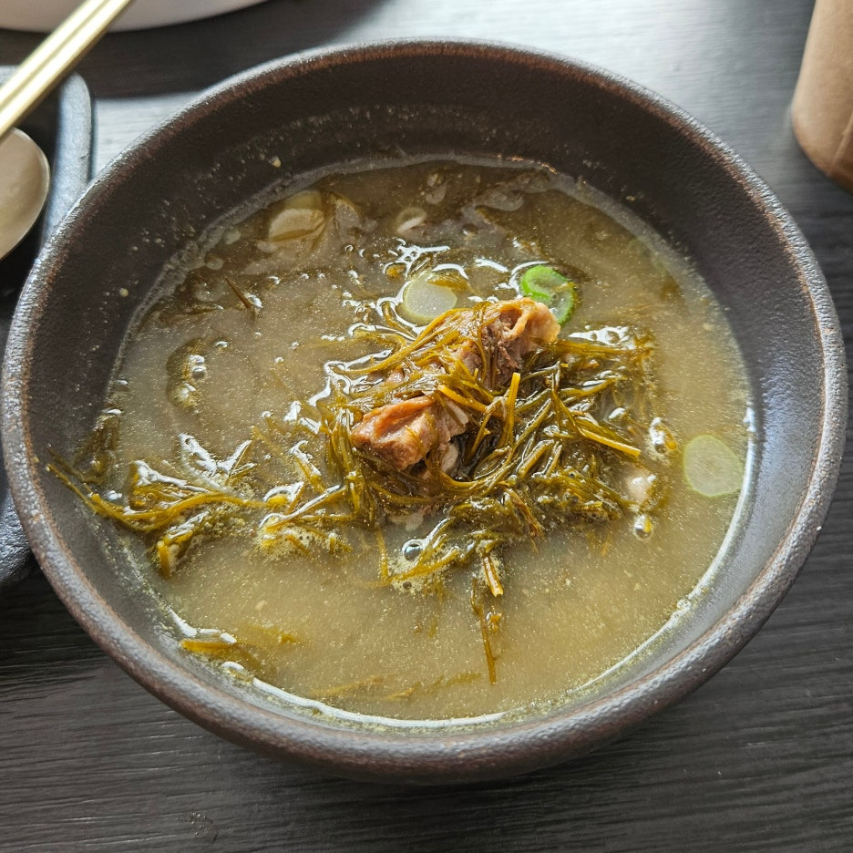 톳으로 생각되는 해초와 돼지고기를 넣고 푹 끓여 나오는 듯하다. 솔직히 해초를 끓여 먹으면 그게 무슨 맛일까 꺼려졌었는데... 웬걸 아주 시원하고 좋다. 해초는 맛을 내는 재료라기보다는 식감을 담당하는 듯했다.