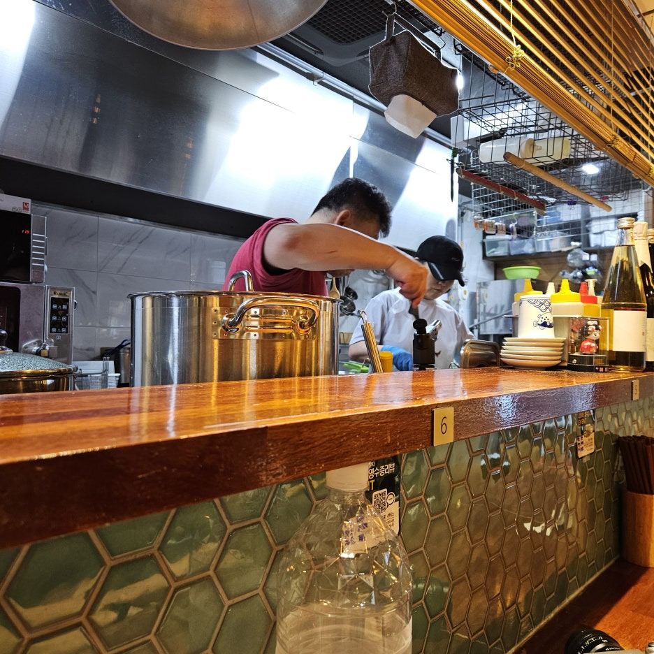 일본의 라멘집에 앉아 있는 것은 아닌지 착각하게 만든다.