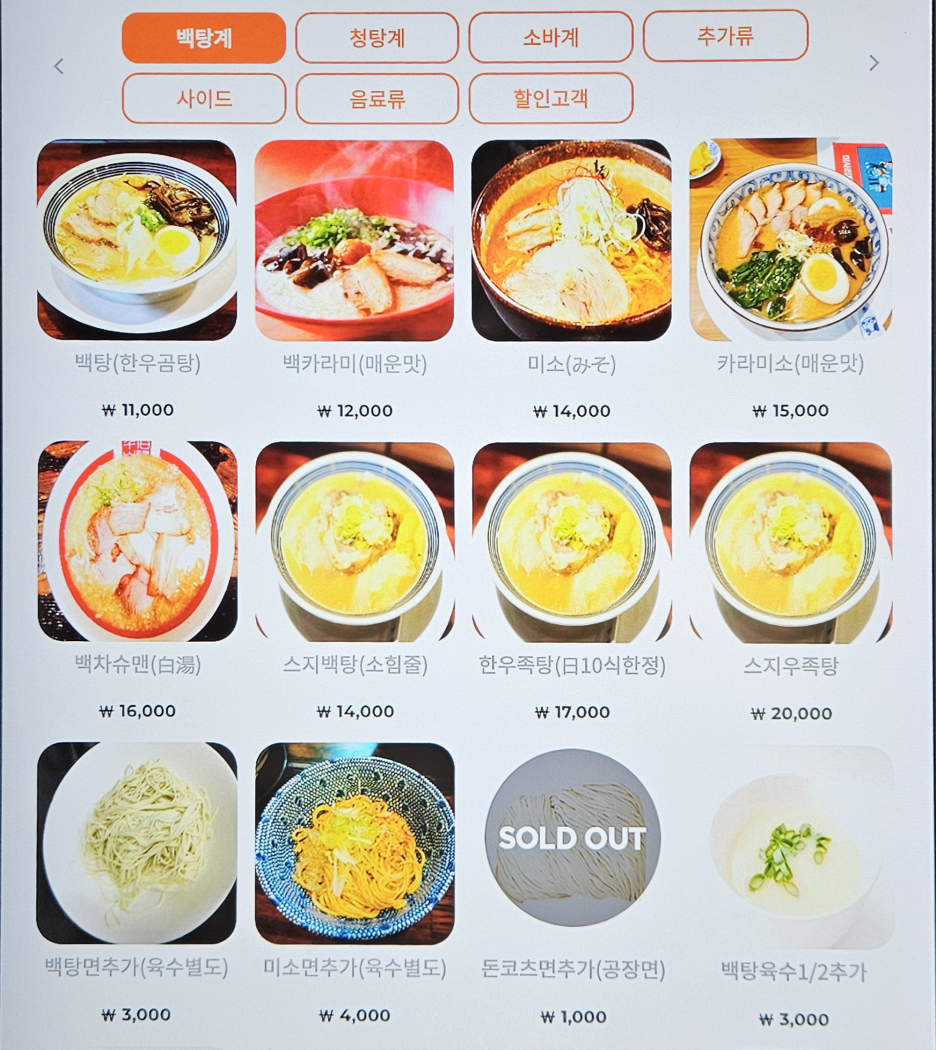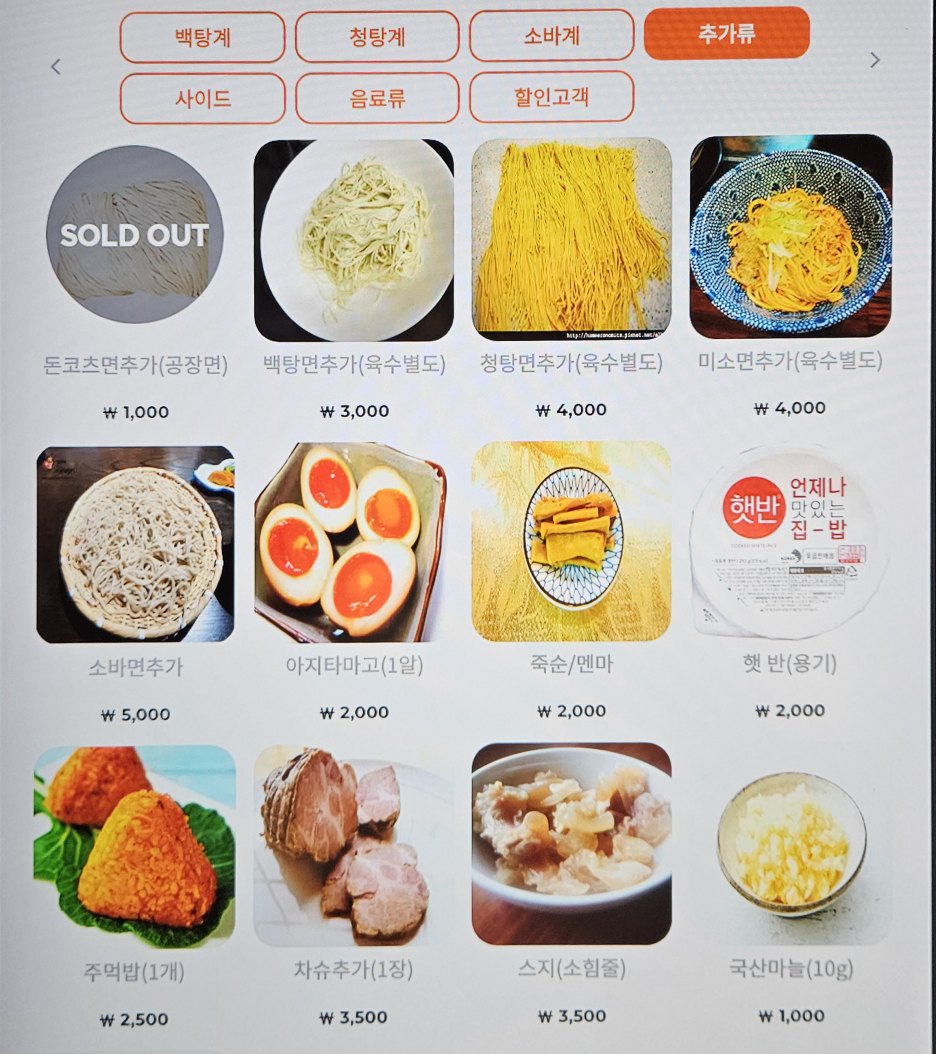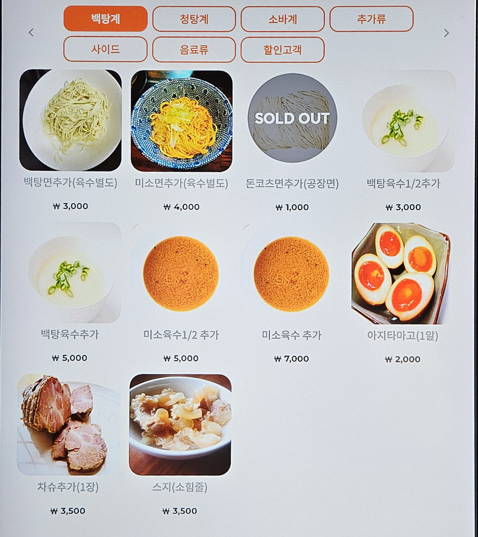 메뉴는 이러하다. 또 놀라운 건, 국물 면 등 모든 추가 재료는 부분유료화되어 있고 가격도 상당하다. 얼마나 자신이 있으시길래 이렇게 하시는지, 아니면 추가 주문을 안 받으시려고 하시는 건지 모르겠다.