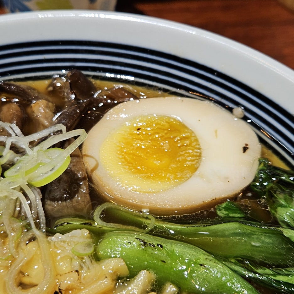 버섯, 죽순, 청경채, 삶은 달걀과 차슈.