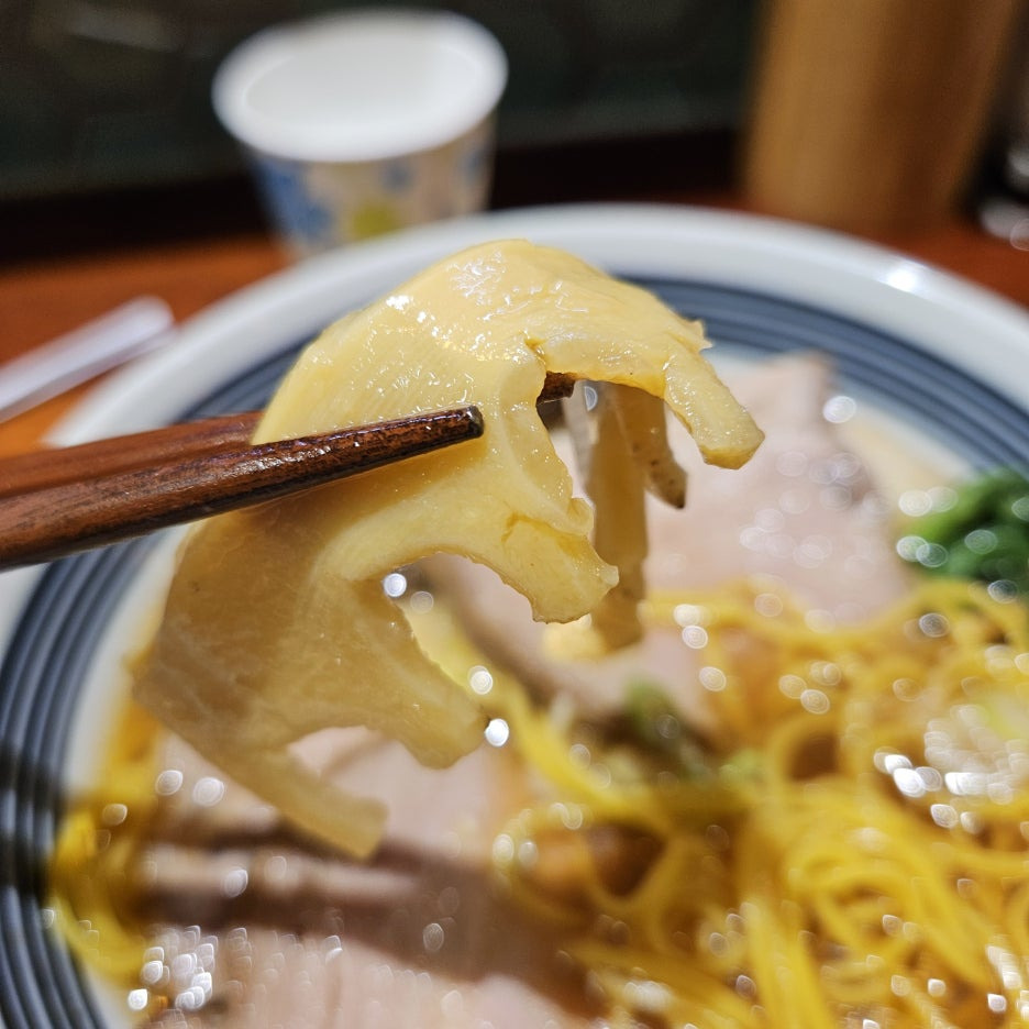 살짝 노란색이 감도는 면도 괜찮았다. 익힘 정도를 따로 요청하지 않았는데, 살짝 딱딱한 느낌의 카타로 나와서 완벽하게 만족. 일본의 일반적인 라멘집에서 사용하는 면의 굵기 정도였고, 자가제면이라 그런지 더 좋은 느낌이다.