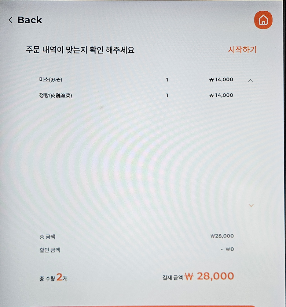 주문은 키오스크를 사용해서 쉽게 할 수 있다. 우리는 미소라멘과, 청탕 라멘 2개를 주문했다. 그런데, 보시다시피 가격이 상당하다. 강남과 합정에서 유명한 오레노라멘도 1만 2천 원의 가격인데, 경기도 하남에 있는 여기는 무려 1만 4천 원이라는 놀라운 금액이다.