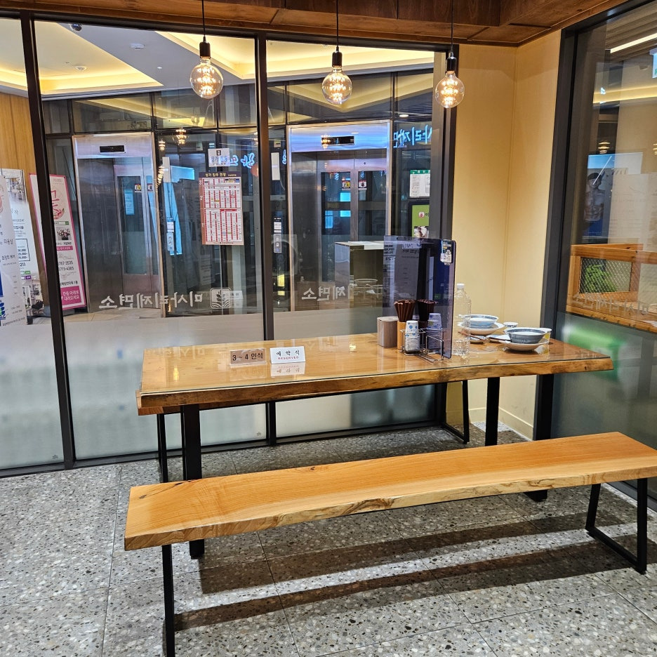 안쪽으로는 3~4개 정도의 테이블이 있는데, 3명 이사의 단체 손님들이 와야 사용할 수 있는 형태가 아닐까 싶은 생각이 들었다. 모든 테이블에는 예약석이라는 푯말이 있었기 때문.