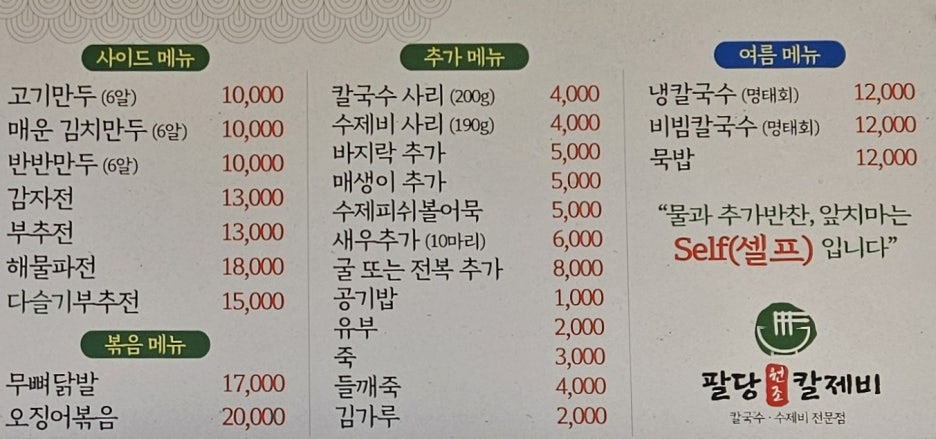 - 팔당 원조 칼제비는 창모루 대비 비싸다. 그리고, 추가 금액이 참 많이 붙는다. 아쉽다.