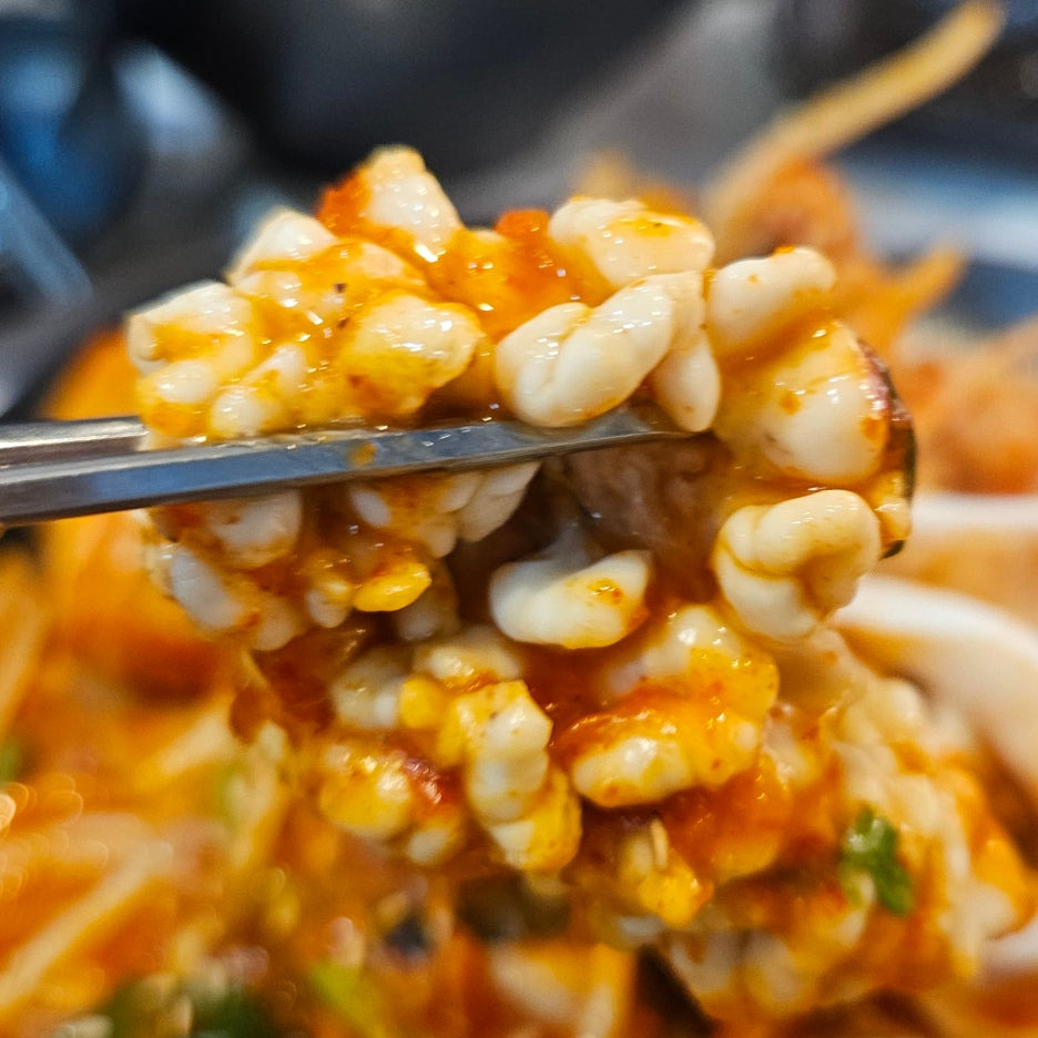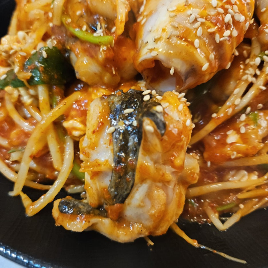 아구찜에도 알과 곤이가 추가로 들어가고, 거기에 통오징어 한 마리가 턱 얹히는 매직. 다만 배달의 경우에 오징어는 포함되지 않는다고 한다.