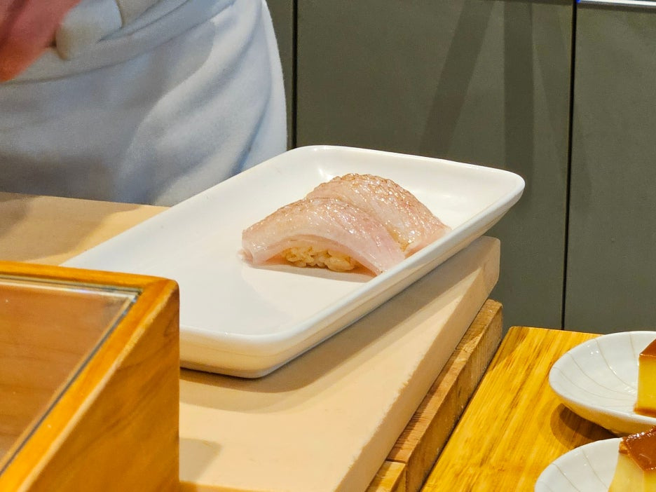 살짝 파의 야쿠미 향이 느껴지며, 샤리와 잘 어울렸던 참돔. 첫 시작이 아주 좋다.