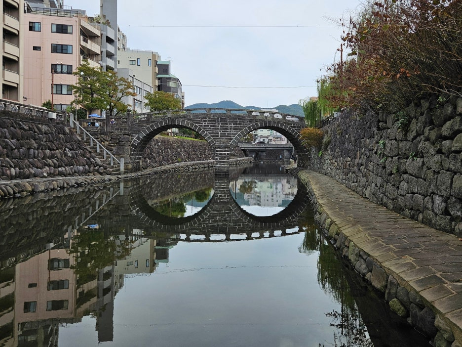 는 물에 비친 모습이 영락없이 '안경'을 닮았다고 해서 메가네 바시(眼鏡橋)라는 이름이 붙여졌다. 메가네는 안경, 바시는 다리를 뜻한다. 오랜 역사를 간직한 동시에 로맨틱한 분위기까지 품고 있는 나가사키의 대표 명소. 메가네 바시는 나가사키 시내를 흐르는 나카시마 강(中島川)에 놓인 12개의 석교 중 하나로 일본에서 가장 오래된 아치형 석교라는 역사적 가치가 있다. 에도(江戸)의 니혼바시, 이와쿠니(岩国)의 긴타이쿄와 함께 '일본 3대 명교' 중 하나로 꼽힌다고.