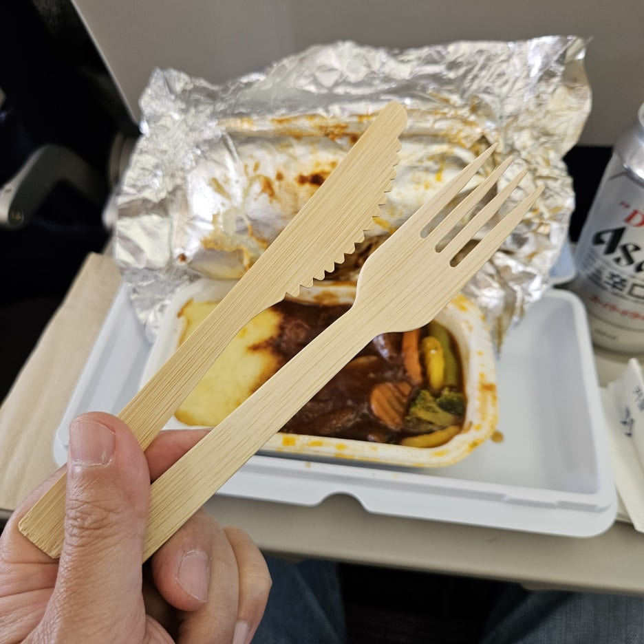 포크와 나이프도 나무 재질의 것으로 변경되어 있었다. 가벼워서 오히려 사용하기 편리했다.