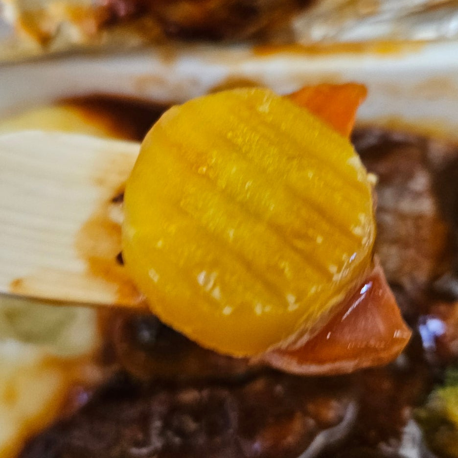 소고기와 감자를 메인으로 구운 야채가 함께 들어 있는 메뉴다. 소스는 데미그라소스의 느낌.