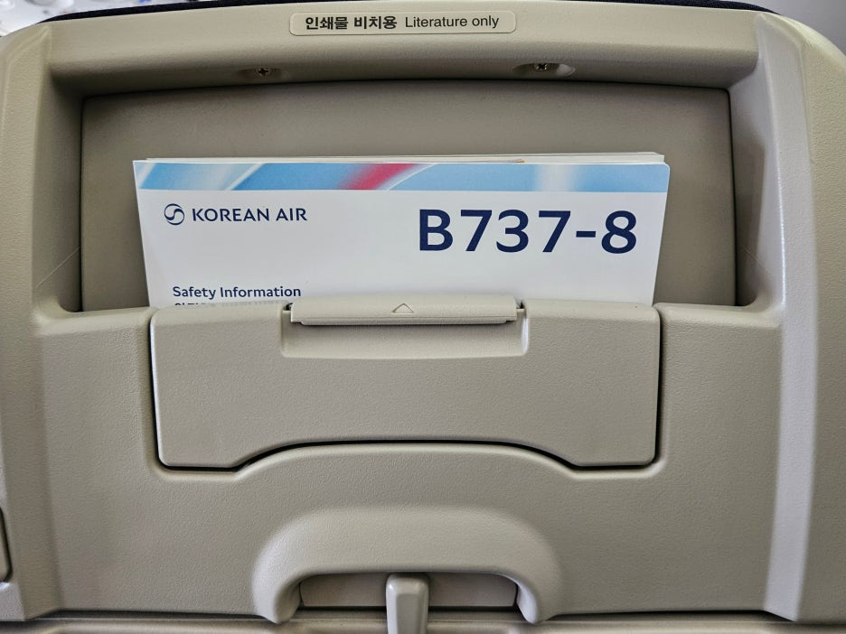 좌석에는 모니터도 없다. 짧은 비행이고 작은 비행기이다 보니 그런 것 같다. 3-3 배열의 좌석이고, 총 좌석수가 126석 정도라고 한다.