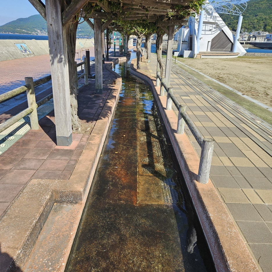 일본에서 가장 뜨거운 온천 중 하나인 오바마 온천에는 오바마 온천의 가장 상징적인 명소가 있다. 바로, 족욕을 할 수 있는 시설인 '홋토훗토 105(ほっとふっと105)'. 오바마 온천의 원천 온도가 무려 105℃인 것을 기념하여, 족욕탕의 길이를 일본 최장인 105m로 만들었다고 한다. 이 긴 족욕탕에 발을 담그고 다치바나만(橘湾)의 바다를 바라보는 풍경은 일품.