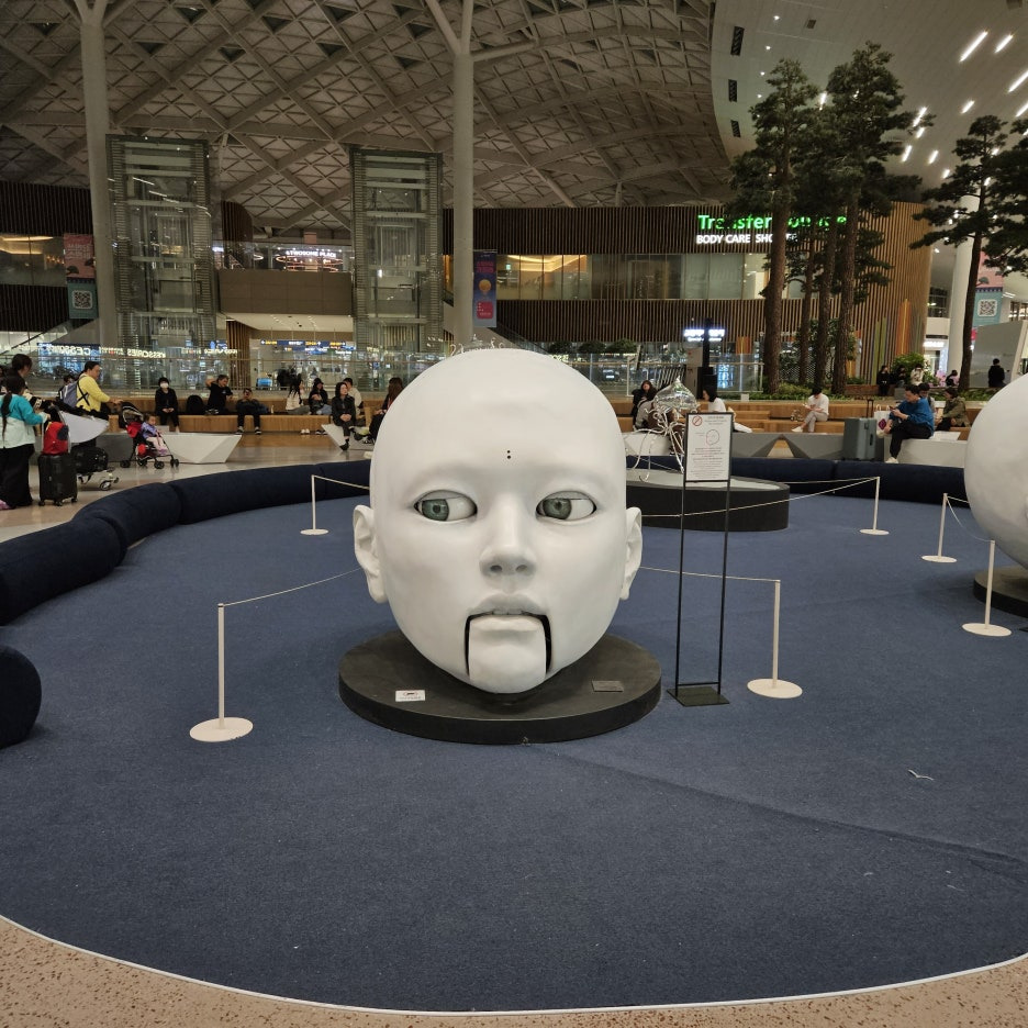 대한항공의 체크인과 백드롭은 모두 05:30부터 시작을 한다. 그런데 이미 대기 줄이 상당했다. 셀프 체크인과 백드롭. 스마트 패스를 통해 빠르게 출국 수속을 마쳤다. 제2터미널에서 본 조형물. 조금 무섭다. 거기다 이 녀석은 말도 한다. 말을 걸면 대답도 하는 무서운 녀석.