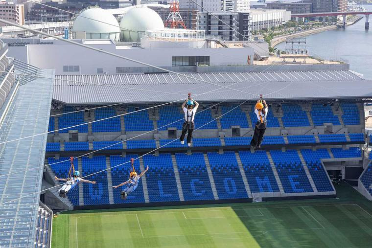 특이하게도 축구 경기장을 가로질러 가는 집라인을 탈수도 있다.