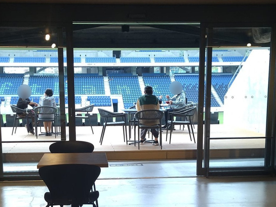 2층과 3층에서는 경기장 옆에서 푸드몰에서 구입한 음식과 맥주를 한잔할 수도 있는 듯. 일본 현지인들이 음식을 즐기는 모습을 볼 수 있었다.