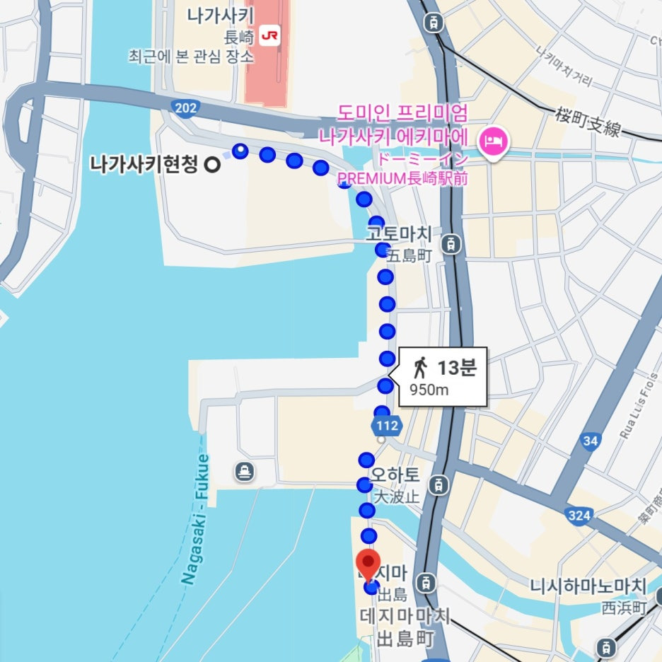 직전에 방문한 나가사키 현청에서는 도보로 13분 정도. 나가사키 역에서도 멀지 않은 거리라 충분히 도보로 이동할 수 있다.