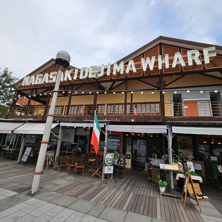 데지마 워프(出島ワーフ)는 나가사키 항구와 맞닿아 있는 아름다운 바다 풍경과 함께 맛있는 음식, 여유로운 분위기를 만끽할 수 있는 베이 사이드 복합 상업 시설이 있는 거리이다.