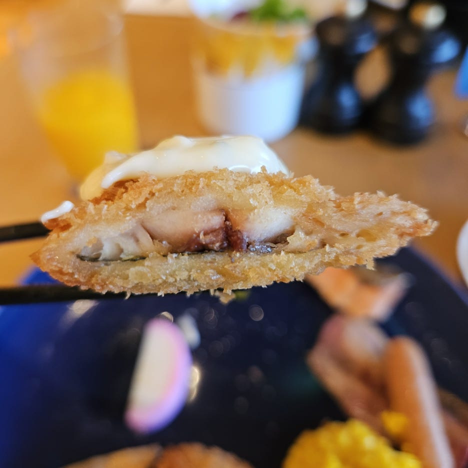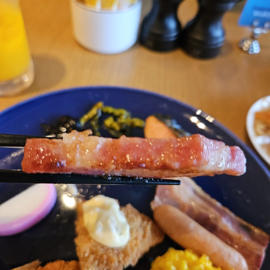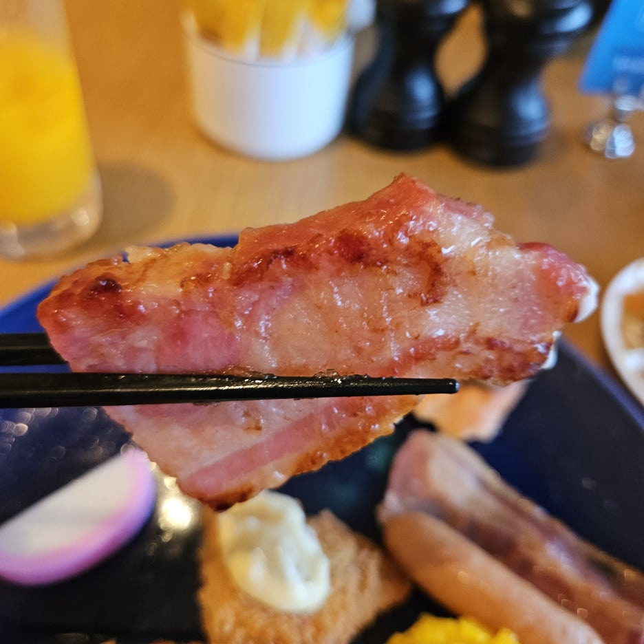 주로 일본 호텔 조식에서만 자주 볼 수 있는 메뉴인 듯한데, 두꺼운 베이컨도 맛있다. 짜지 않고 맛있는 돼지고기를 먹는다는 느낌으로 잘 먹을 수 있었다.