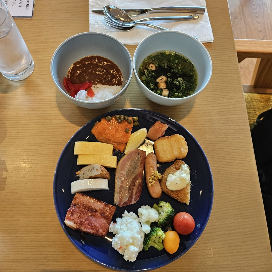 일본 호텔 조식에서 항상 맛있게 먹었던 카레도 역시 일품. 특히 힐튼 호텔 계열에서 먹는 카레가 맛있는 듯하다. 재료는 많이 들어있진 않았지만, 걸쭉한 느낌에 깊은 향이 느껴지는 카레는 항상 맛있다. 거기에 아지 프라이 한 조각 올려서 먹으니 완전 최고의 조합.