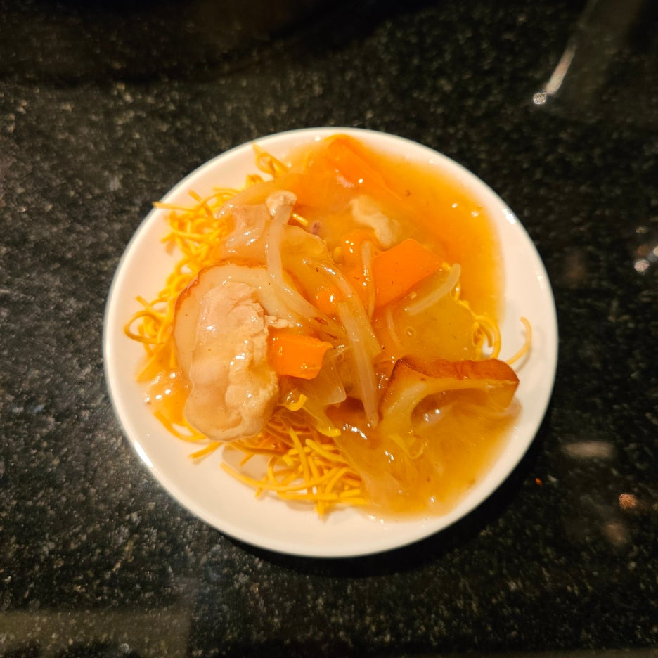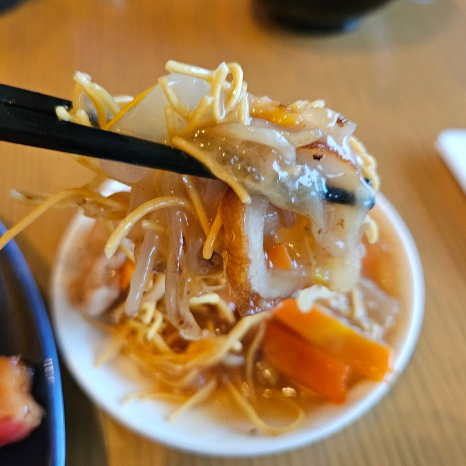 짬뽕과 함께 나가사키의 면 요리를 대표하는 사라우동. 라면땅처럼 튀겨진 얇은 면에 걸쭉한 안가케 소스를 부어 먹는 음식. 나가사키에 처음 왔을 때 완전히 반해버린 음식이다.