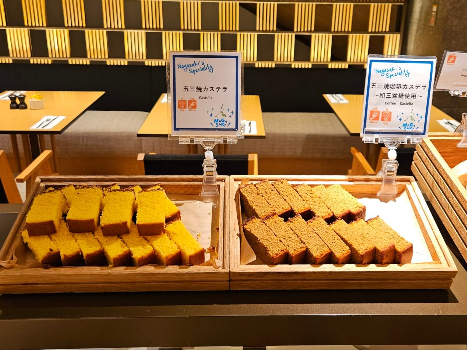 힐튼 나가사키 조식에서 가장 마음에 들었던 부분은 나가사키의 명물 음식들이 많이 비치되어 있다는 점이었다. 특히, 사라우동과 전갱이 튀김은 아주아주 마음에 들었던 메뉴들. 그리고, 나가사키에서 가장 유명한 카스테라도 두 가지 맛이나 있어서 좋았다.