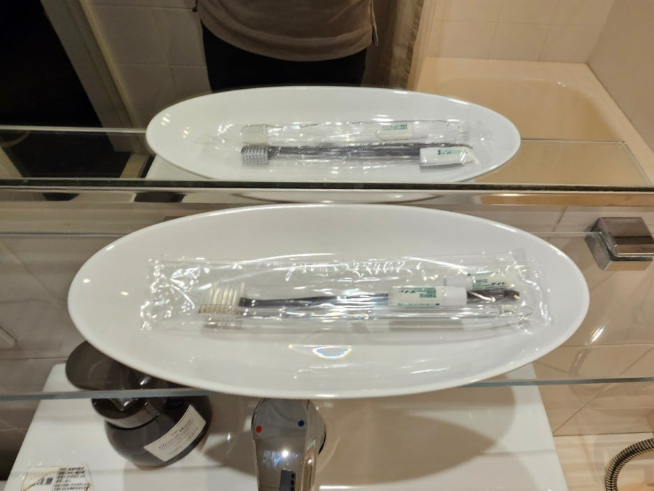 칫솔과 치약도 준비되어 있다. 따로 어메니티 공간에서 가져올 필요는 없었다.