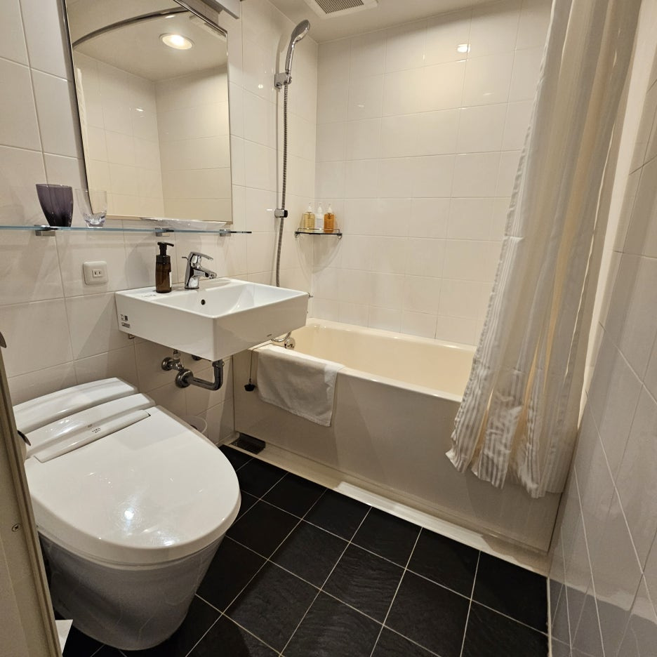 욕실은 너무나 자주 보던 형태. 좁지만 사용하기에는 불편함이 전혀 없었다. 일본이니 당연히 비데는 설치되어 있고.
