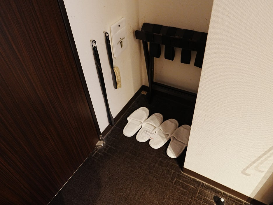 옷걸이 공간에는 냄새 탈취제와 슬리퍼 등이 비치되어 있었다.