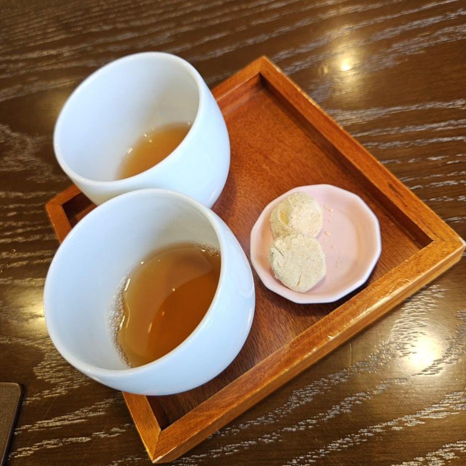 과자는 일본 전통 과자 인듯 했다. 콩가루가 뭍어 있는 것인지 첫 맛은 고소했지만, 속은 역시 달았다. 그래도 맛있게 잘 먹었다.
