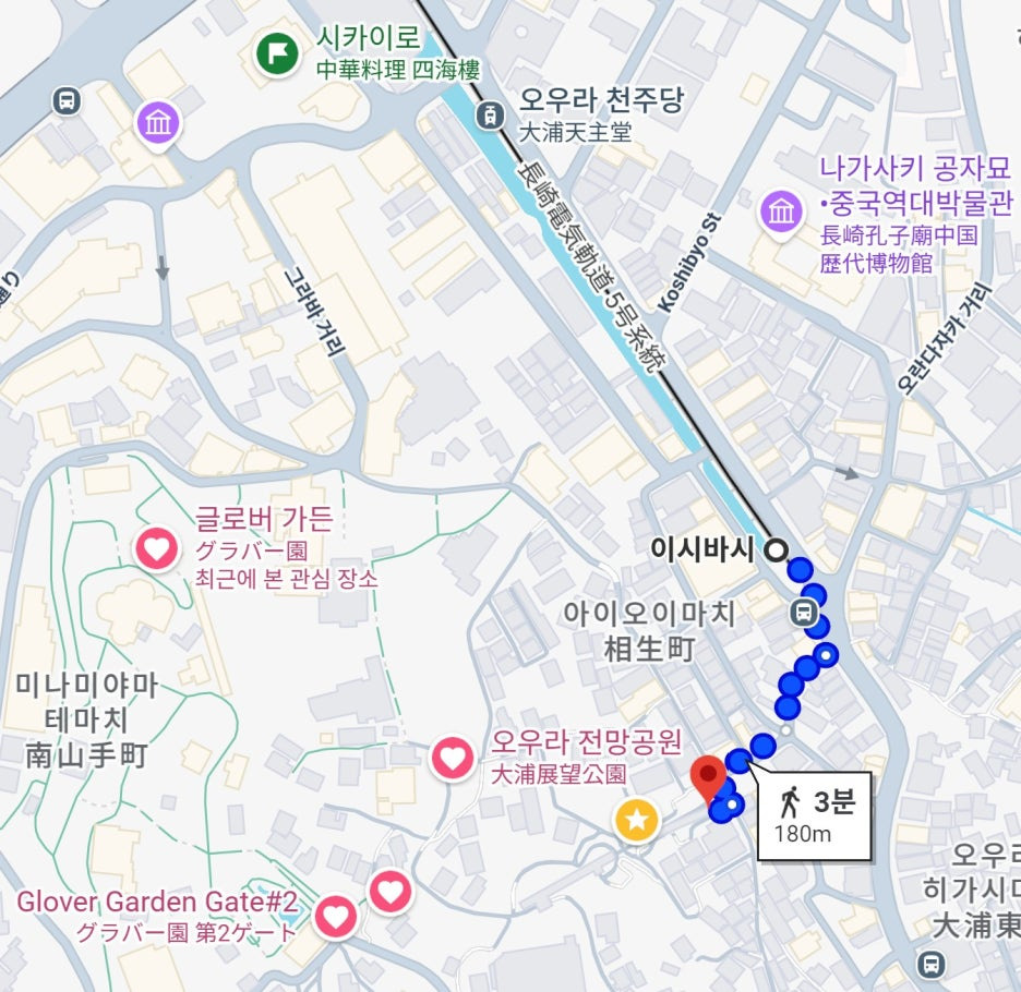 보통 글로버 가든을 가는 대다수의 관광객은 오우라 천주당 근처의 노면전차 정류장이나 버스정류장에 내려서 이동하는 경우가 많다. 하지만, 이 경우에는 오르막길을 계속 올라가야 하는 힘듦이 존재. 나가사키를 여행하는 우리는 하루에도 2만 보 정도는 걸어야 하니, 최대한 편하게 다니는 것이 필요한 부분. 바로 이렇게 편리하게 글로버 가든을 방문하면서도, 주변의 모든 관광지를 볼 수 있는 루트로 오늘은 안내해 볼까 한다.