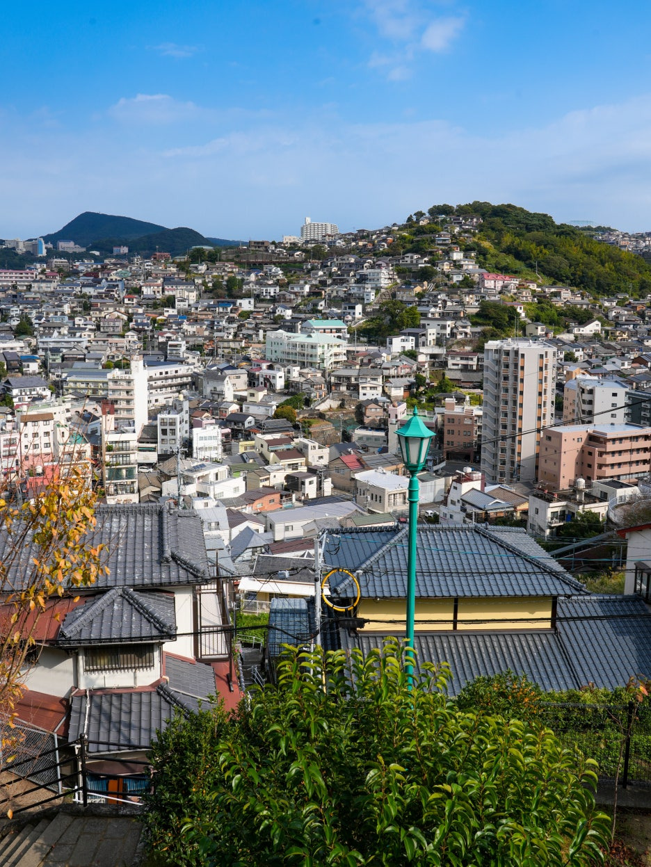 엘리베이터를 타고 많이 올라온 언덕이라 한눈에 나가사키의 풍경이 들어온다.