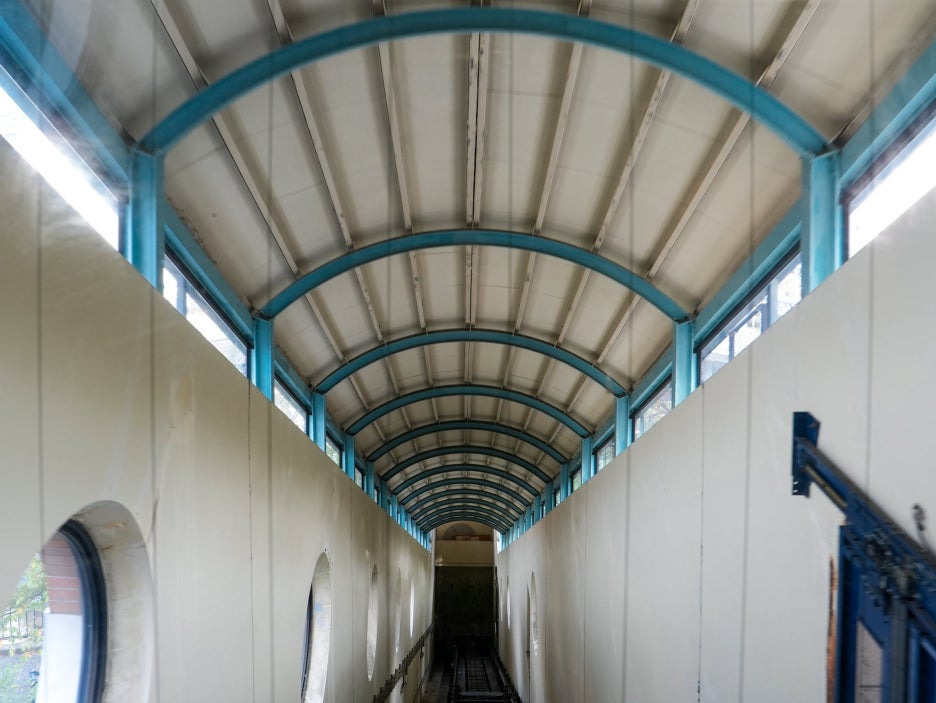 엘리베이터는 수직으로 이동하지 않고 사선으로 이동을 한다. 슬로프카 같은 느낌.