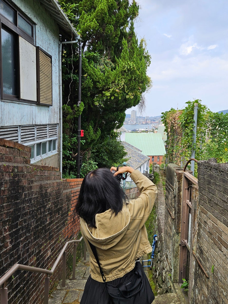 이곳은 다시 조금 내려와서 보이는 골목. 오우라 천주당과 나가사키항이 함께 보이는 골목길이 운치 있다. 일본 유튜버가 강추한 곳이라 수고스러웠지만 둘러본다.