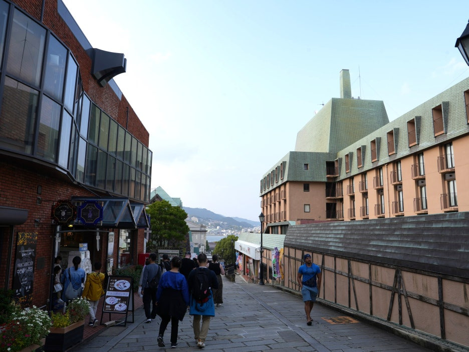 언덕을 내려는 길에는 다양한 기념품점과 카페, 카스텔라 판매점, 가쿠니 판매점, 푸딩 가게도 있어서 편하게 내려오면서 둘러보기 좋은 길이다.