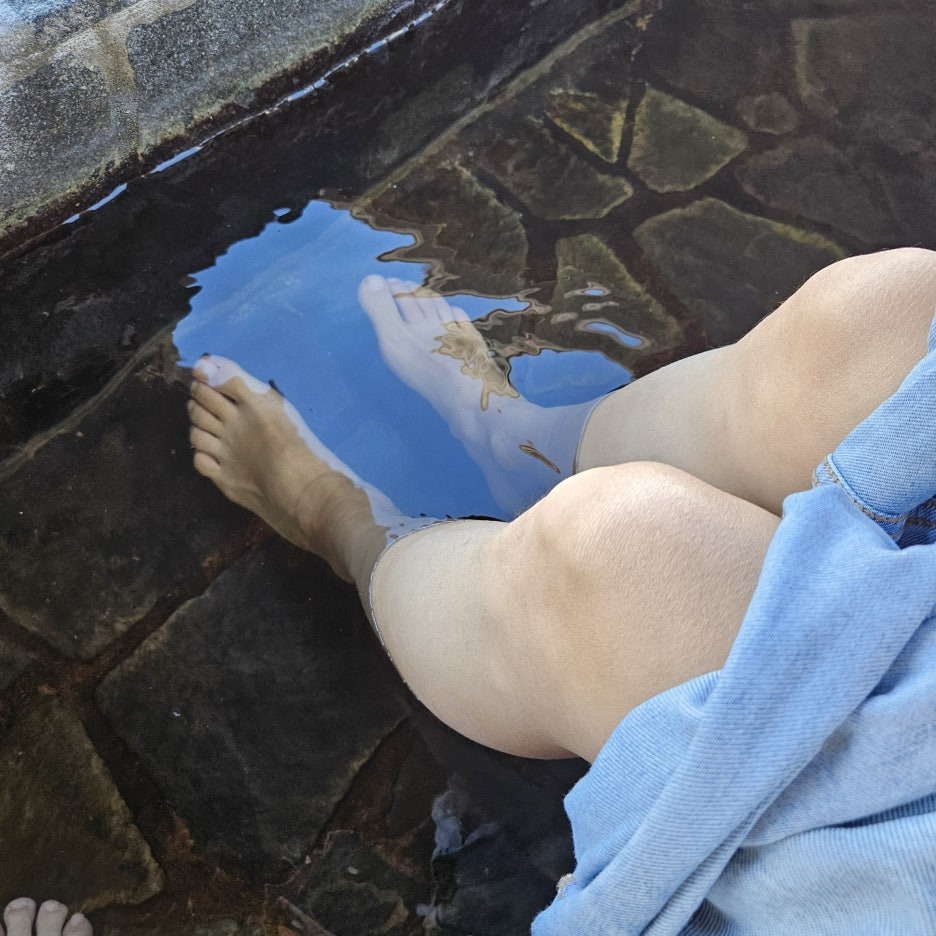 족욕장에는 이미 많은 일본 관광객들이 발을 담그고 있었다.