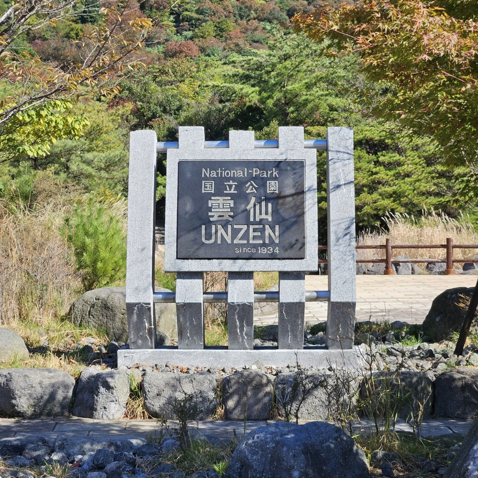 1934년에 지정된 듯한 운젠 국립공원을 알리는 비석.