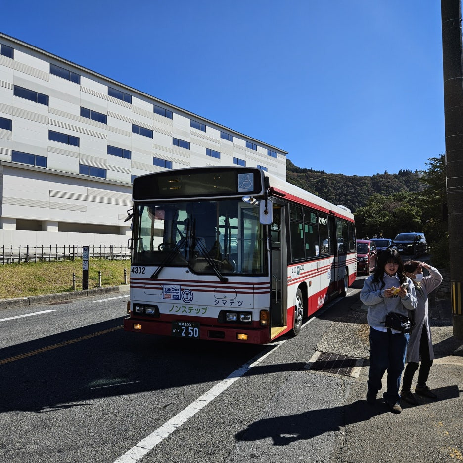 포르자 나가사키 호텔에서는 쥬오바시 정류장에서 운젠행 특급 버스를 타는 것이 가까웠다. 이 정류장에서는 오전 9시 17분에 버스가 도착한다고 되어 있는데, 9시 15분 전에 미리 대기하는 것이 좋을 듯하다. 일본 도시의 대중교통의 거의 제시간을 잘 지키니 걱정은 필요 없을 듯.