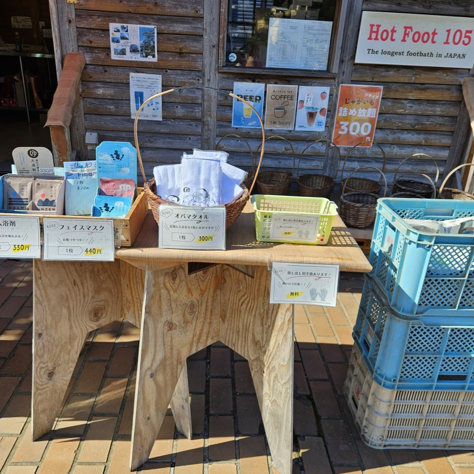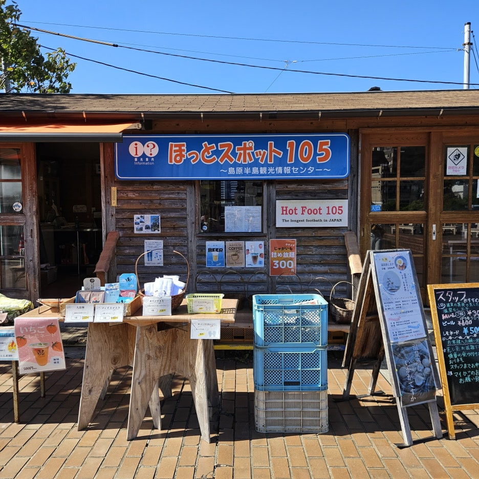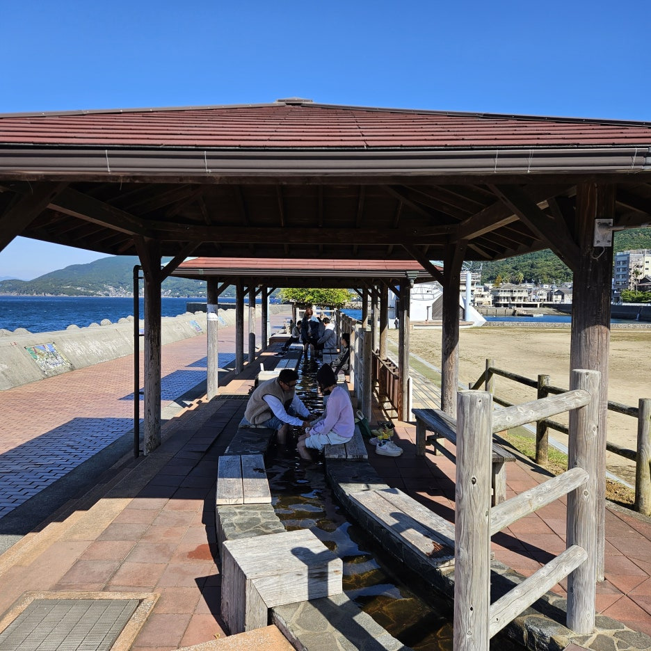 어서 오세요, 일본 제1의 족욕장 "홋토훗토 105" 이 족욕장은 일본에서 가장 긴 길이의 105m. 105m인 이유는 오바마 온천의 물 온도가 105도이기 때문이라고.
