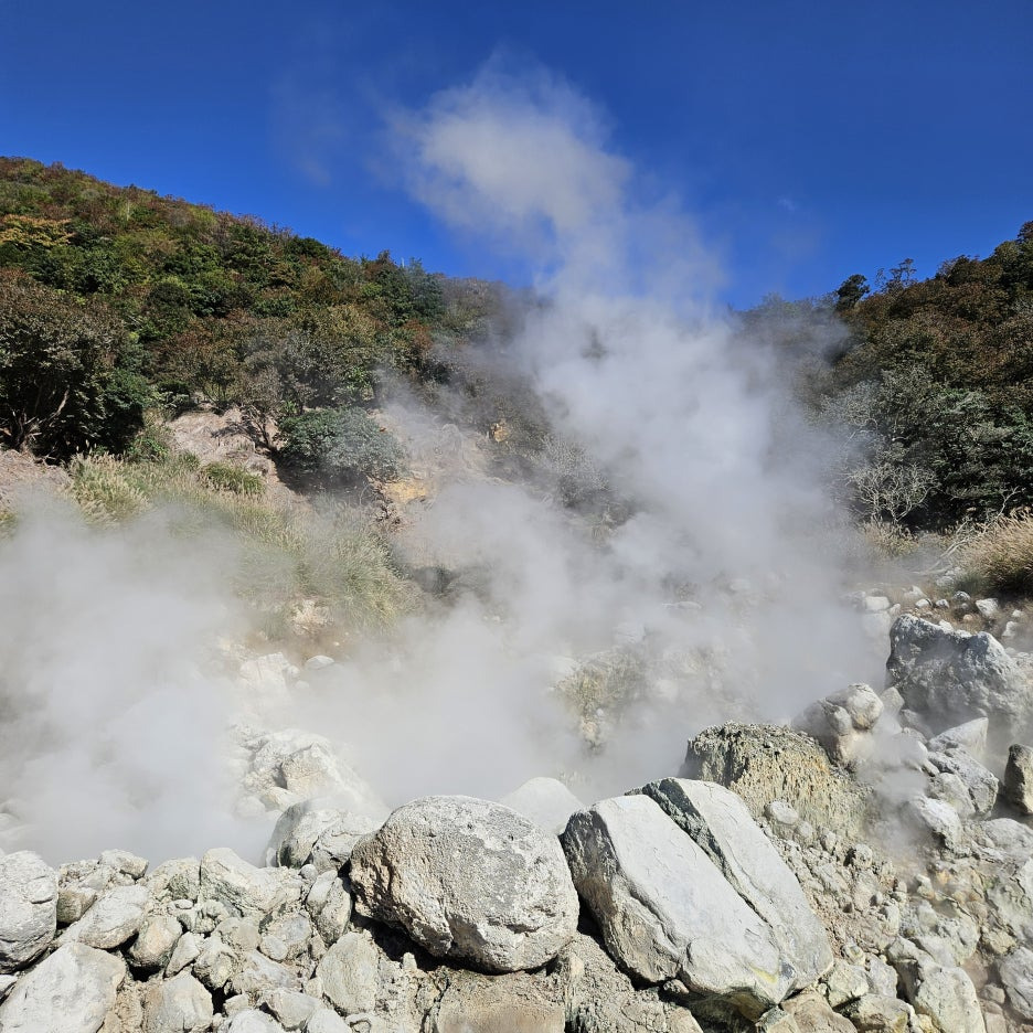 곳곳에서 솟아나던 연기. 온몸을 감싸는 경우도 많았는데, 이때는 숨쉬기가 힘들 정도로 유황의 냄새가 강했다. 몸 건강에 영향을 미치지 않을지 걱정이 되는 정도.