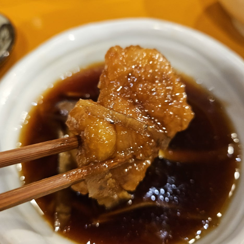 어떠한 고기를 튀겨서 조린 느낌의 음식. 그런데, 나의 예상은 고래고기이지 않을까 싶었다. 이 집이 고래고기로도 유명한 곳이니 오토시로 그런류가 나오지 않을까 했고, 아주 옛날에 부산에서 고래고기를 먹어봤었는데, 식감이 좀 비슷하기도 했다. 재료는 정확하지 않지만, 일반적으로 일본에서 접할 수 있는 소스와 맛이었다. 재료의 맛이 두드러지는 것이 아니었다.