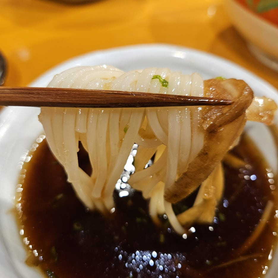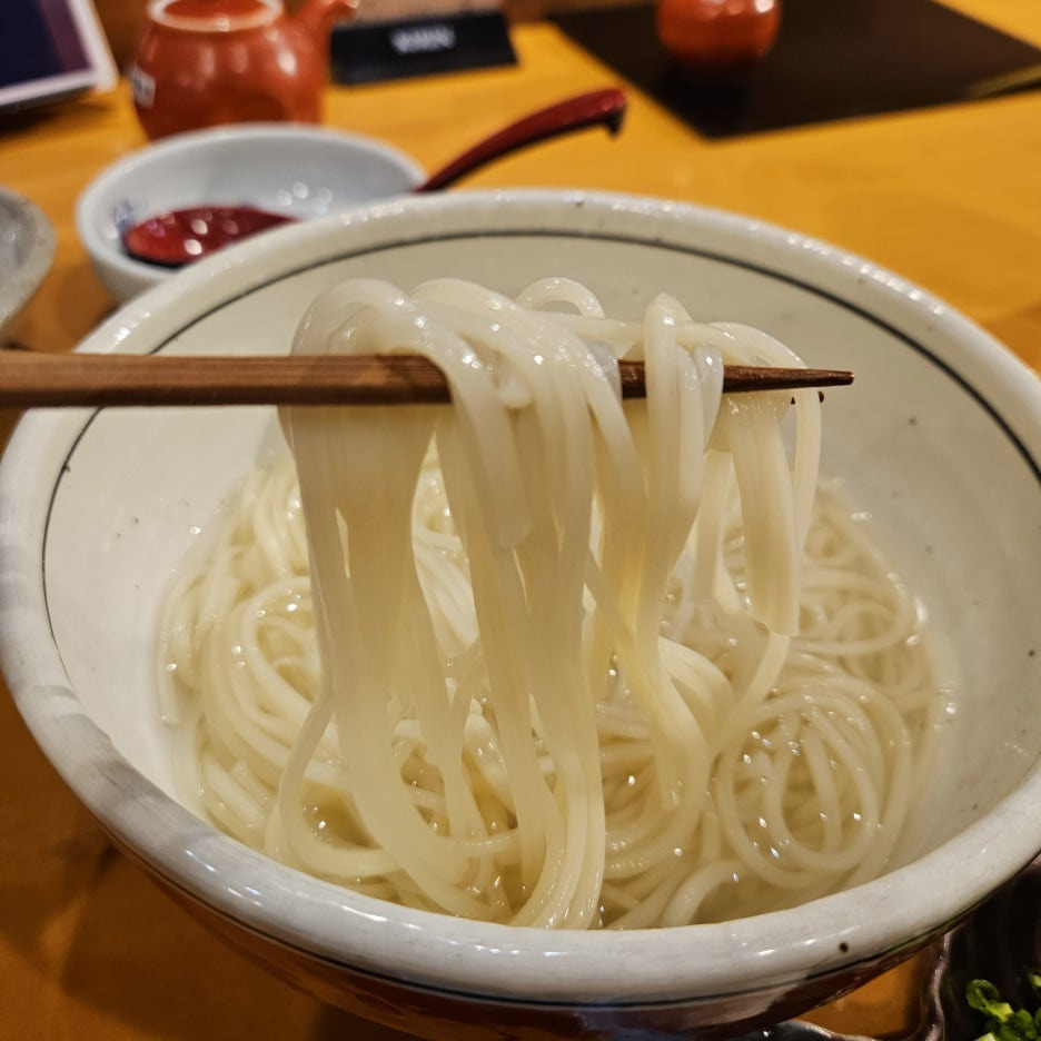 일본의 3대 우동이 되기 위해 열심히 나가사키 노력 중이라는 고토 우동. 이나니와 우동처럼, 얇은 면이 특징이고 쫄깃하다. 사누키 우동같은 쫄깃함이 아닌, 우리나라 소면에서 느껴지는 쫄깃함.
