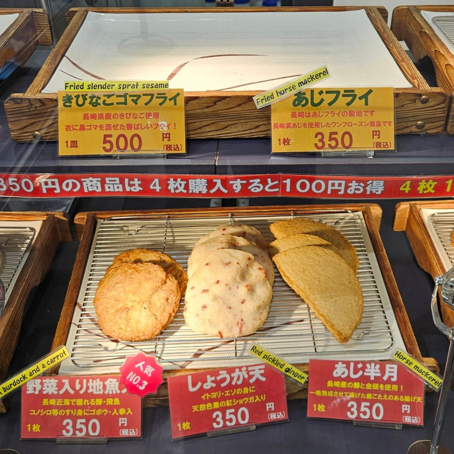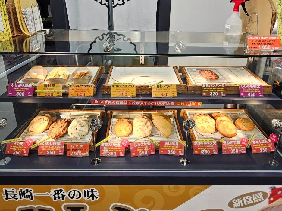 나가사키 이치반의 전공인 가마보코. 위쪽에는 각종 튀김류도 있다.