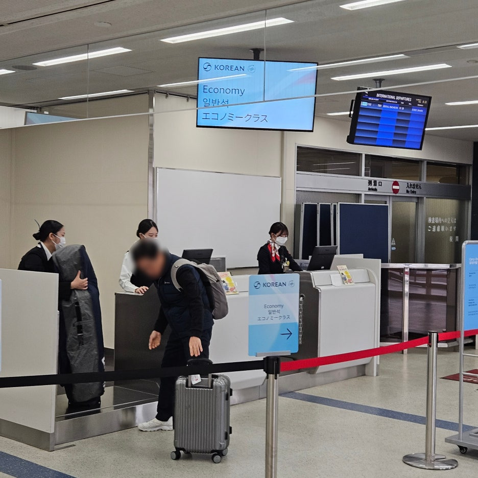 아쉽게도 한국으로 돌아가는 날. 아침 7시 40분에 쥬오바시 정류장에서 공항 리무진버스를 타고 도착하니 8시 20분 경이었다. 나가사키 공항에서 이 시간대에 출발하는 국제선은 대한항공 하나밖에 없어서 한산한 모습.