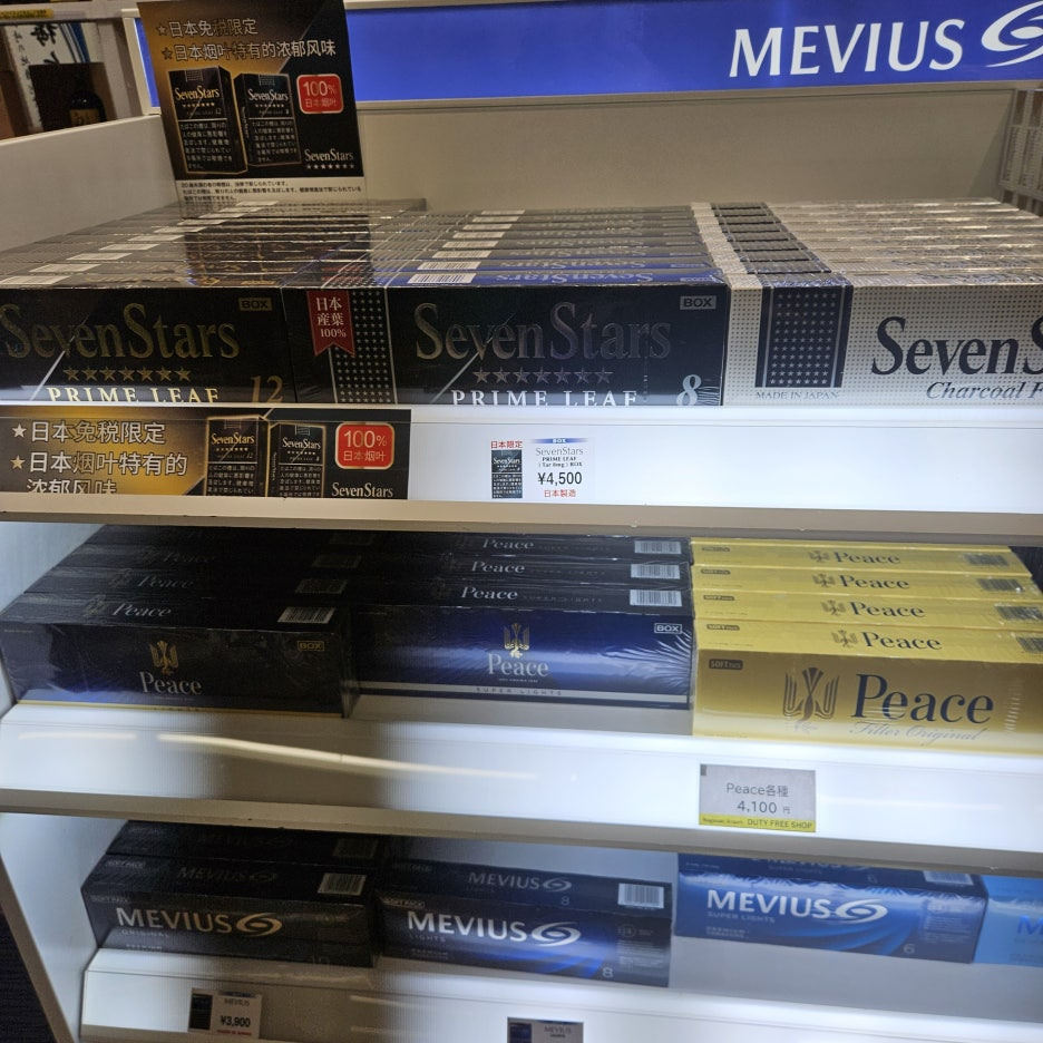 담배는 일본산으로 채워져 있다. 권련형 담배를 피우지 않기 때문에 잘 모르지만, 가격은 3600엔부터 4100엔 정도로 우리나라에서 사는 것보다는 싼 듯.