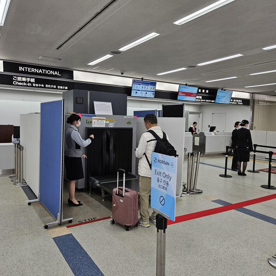 사전 웹 체크인을 했다고 하니, 간단하게 여권 확인과 수화물 태그를 붙이고 끝. 아주 빠르게 진행되었다. 특이한 점은 붙이는 짐을 따로 들고나와서, 보안 검사를 하는 모습. 10분도 안되는 시간에 체크인과 짐 붙이기까지 완료.